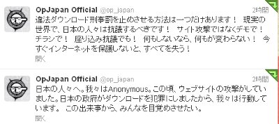 世界的に有名なハッカー集団、アノニマス(Anonymous)が、先ごろ可決した違法ダウンロード刑事罰化に対して、