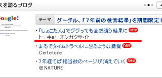びっくりしましたアクセスログを見ていたら、午後のある時間帯から からのアクセスがやたらとあったので、何事かと思って見てみたら・・・。ライブドアの「ニュースを語るブログ」というところで、昨日書いた Google 10周年の記事がピックアップさ...