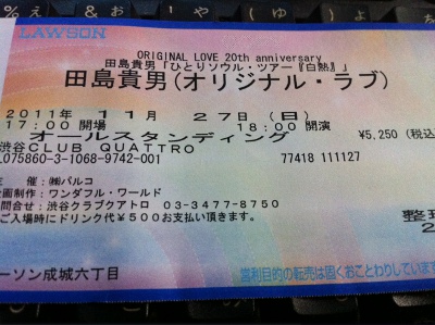 Twitter見てると、大盛り上がりなんだけど、私も正直バンド、オリジナルラブで見たかったなぁと思っちゃいました。でも、幸せそうな田島さん見て、幸せになりましたけどね~。年取ったので、ずっと立ちっぱなし二時間半はちょいときつかったです…(^^;;