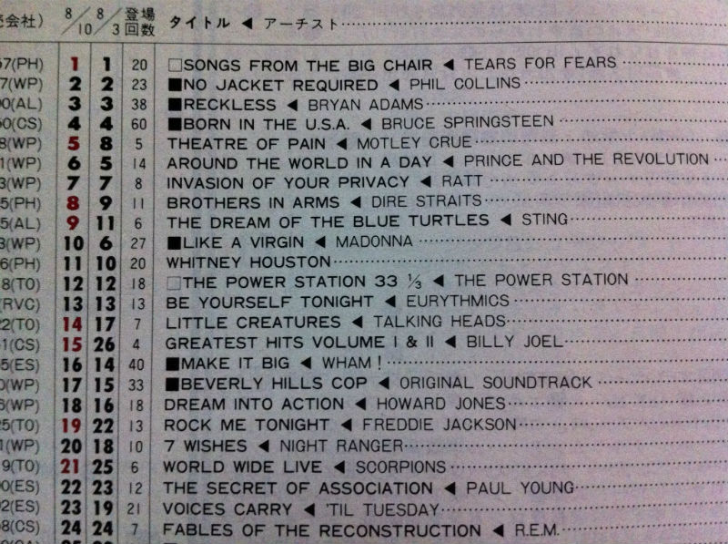 写真は1985年8月10日付けのアルバムチャートで、